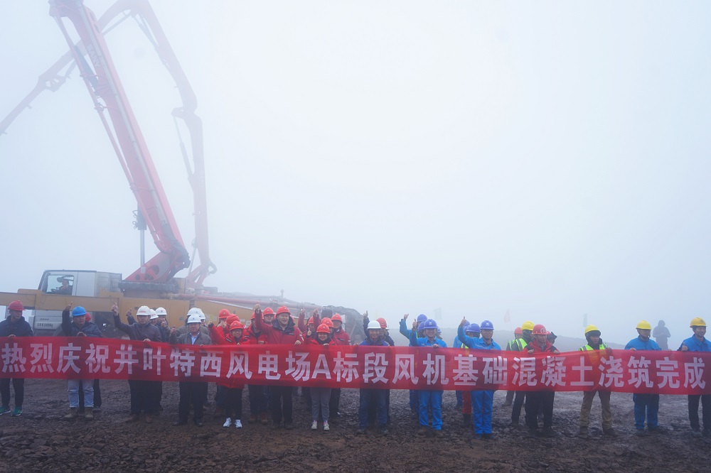 A标段全部41基风机基础浇筑完成,标志着井叶特西风电场全面进入风机吊装及电气设备安装阶段,为后续施工创造了有利条件,鼓舞了各参建单位的战斗士气,为2020年项目投产发电打下了坚实基础。