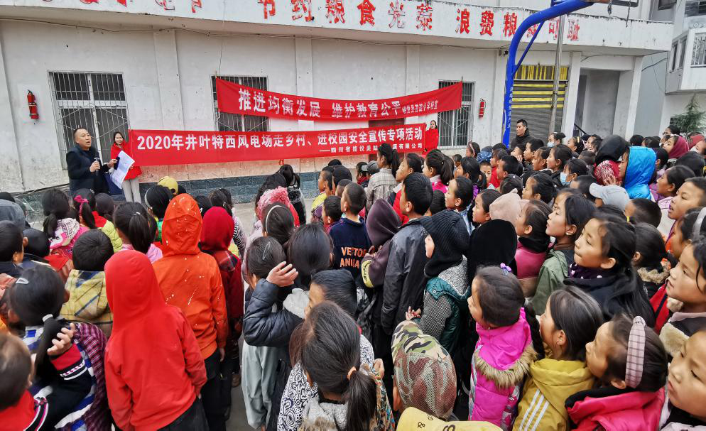 井叶特西风电场首批机组预计将于2020年11月上旬投运,为让广大村民群众进一步了解电力安全法律法规和风电场防触电应知应晓事项,防范误爬误攀等意外触电事件发生,确保电力设施正常安全运行,川能风电美姑公司于11月2日在井叶特西风电场项目涉及的主要乡村和学校,开展了“走乡村、进校园”安全宣传专项活动。