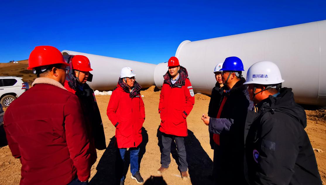 黄永贵一行深入美姑井叶特西、沙马乃托一期风电场及其送出线路施工现场,全面了解项目建设进度,大件设备运输情况、风机吊装以及首批发电机组运行情况。在听取吴平的工作汇报后,黄永贵对公司全体员工拼搏奋斗的精神予以高度评价,对公司科学组织抗击疫情、千方百计确保大件运输、攻坚克难推进项目建设、依法依规做好安全环水保给予充分肯定。