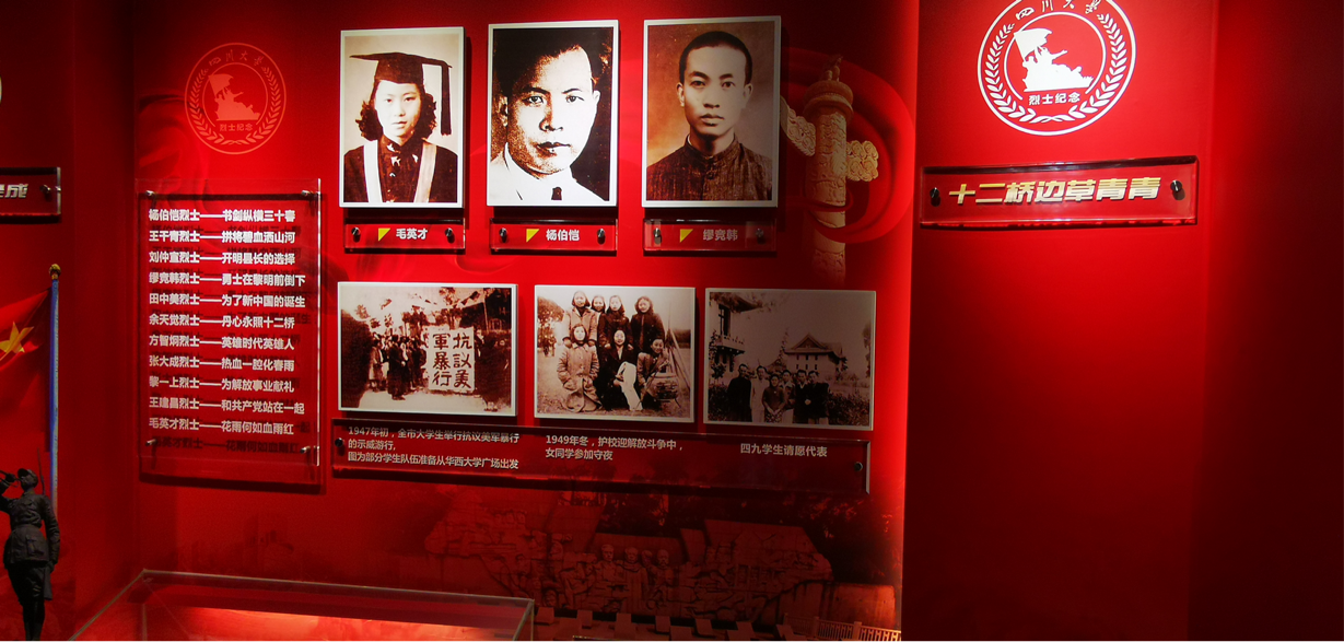 大家首先来到汉白玉的江姐(江竹筠)雕像前鞠躬,敬献鲜花,并集体宣誓,重温了入团宣誓词。在讲解员的带领下,参观“锦江红梅傲雪开”主题展览。纪念馆共分“苦难的童年”“江姐在川大”“百炼成钢,英勇就义”三部分,对江姐短暂而伟大的一生作了详细介绍,生动还原了一个思想进步、青春热情的江姐的校园生活。川大英烈厅展示了民主革命时期为新中国诞生献出宝贵生命的67名川大师生校友的英雄革命事迹,让大家回顾了那段救亡图存的峥嵘岁月。