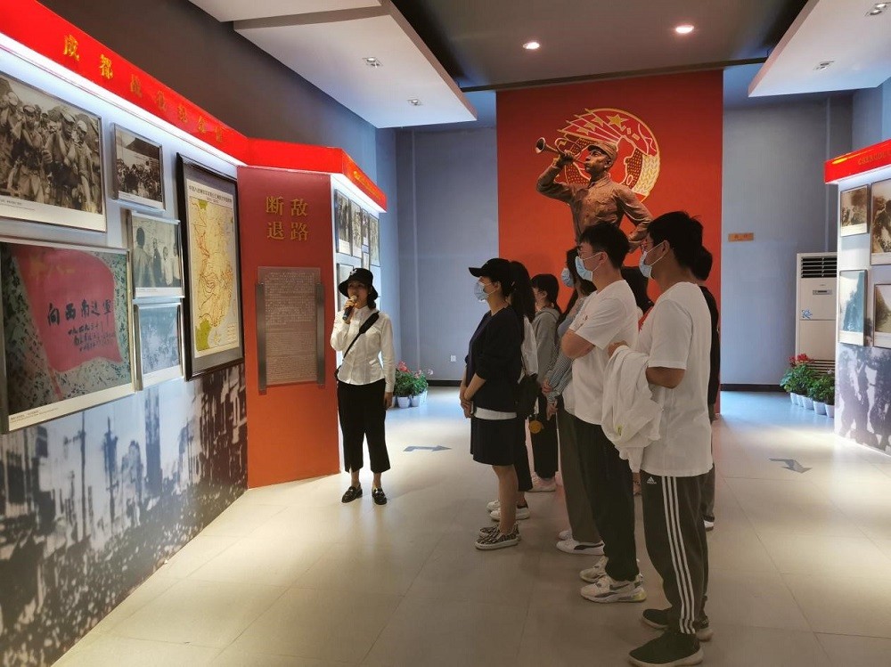 在成都战役纪念馆,团员们仔细瞻仰一张张历史图片、一件件文献实物、一段段文字记录,讲解员深入地讲解了鲜为人知的"成都战役",带领大家重温一幕幕惊心动魄的革命历史场景,追忆中国共产党领导中国人民解放军解放成都的伟大胜利。