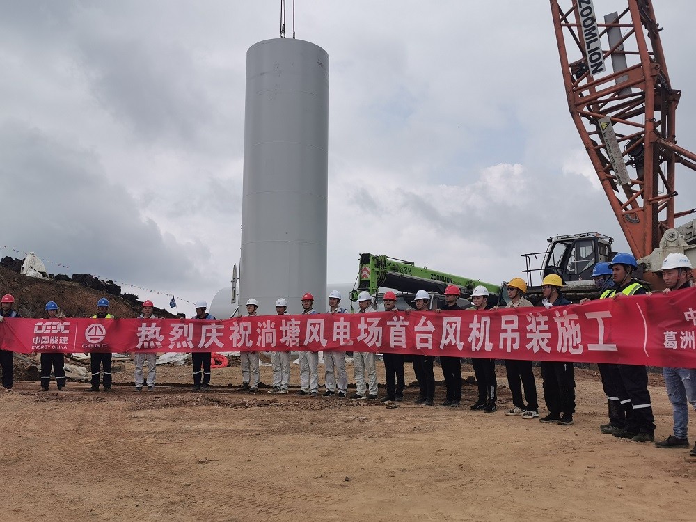 5月4日,四川能投风电会东公司淌塘风电场首台风电机组顺利起吊,标志着淌塘风电场项目已正式进入风机设备安装阶段,向首批风电机组投产发电吹响了冲锋号。