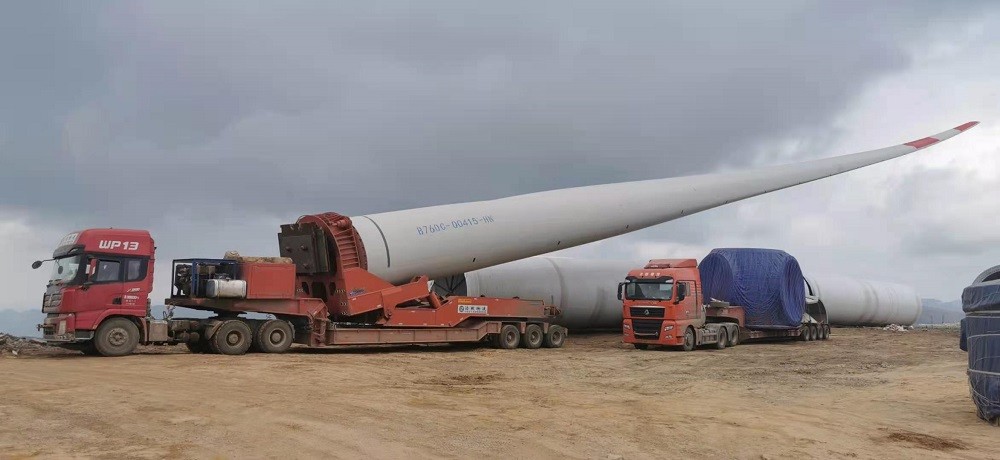 淌塘风电场是四川能投风电会东公司建设的第七个风电场项目,共安装39台3.2MW风力发电机组,总装机容量124.8MW,是会东公司目前装机规模最大的风电场项目。且该项目首次使用155叶片,单只叶片长度达76米,是目前会东公司叶片长度最长的风电场项目,大件运输难度极大。