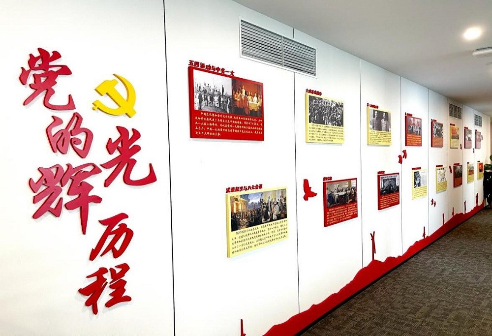 党史文化墙精选中国共产党光辉历程中重大历史事件、重要人物光辉事迹及产生的伟大精神,是系统学习感悟党的光辉历史的有效载体。打造“党史文化墙”,作为党史学习的新平台、新载体,不仅能够学史于有形、润物于无声,也为公司构筑了一道亮丽的“红色风景线”。