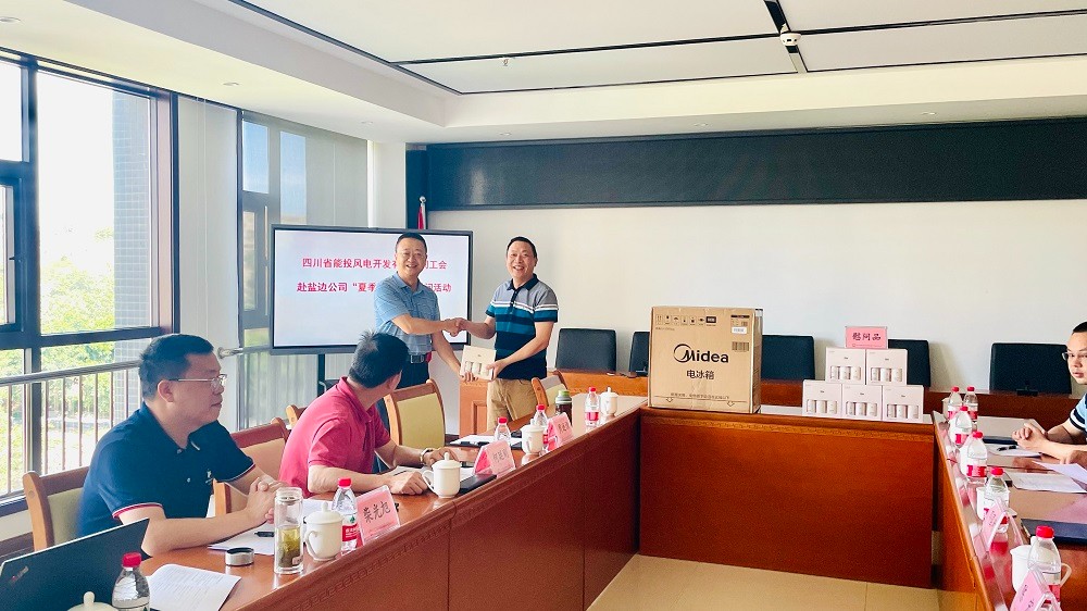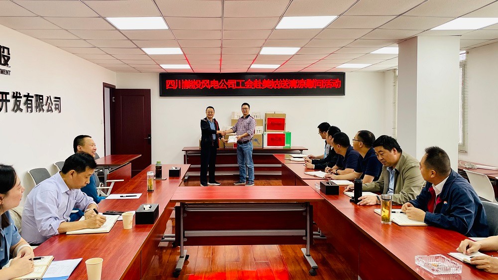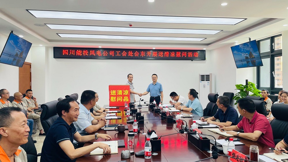 五黄六月,正是骄阳似火流金铄石的时节。为扎实开展党史教育系列活动,深入推进“我为群众办实事”落实落地,持续做好防暑降温工作,6月16日-21日,四川能投风电公司工会主席周述谦一行深入所属会东、盐边、美姑公司现场看望慰问高温天气下坚守岗位的一线员工们,并送去了防暑降温物品。四川能投风电公司副总经理王勇、胡开文,总工程师何廷刚等参加慰问活动。