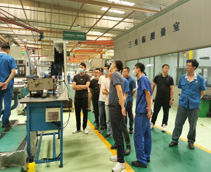 调研组一行实地参观考察了瓦轴轴承的发展历程、设计理念、生产设备、铸造工艺及装配技术等项目,瓦轴集团专家代表全程陪同,并就轴承结构、运行受力方式、维护保养及轴承典型故障等技术要点进行了详实的讲解。随后,召开交流座谈会。会上,双方就四川能投风电公司所属风场风机轴承存在的问题进行了全面的探讨交流,深入分析了变桨轴承外圈开裂、偏航轴承及变桨轴承密封圈渗油、变桨轴承振动异响、主轴轴承过温等频发轴承故障原因,并提出具有针对性的故障排查方法和维护措施。