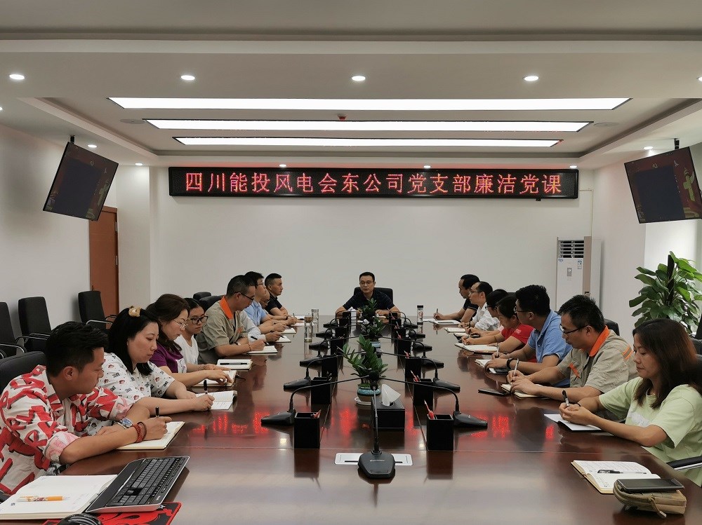 为全面深入推进公司党风廉政建设,强化广大干部职工廉洁从业意识,8月16日下午,四川能投风电会东公司党支部组织开展“严守党纪国法 坚持廉洁从业”主题廉洁党课,公司县城办公的全体干部职工参会。
