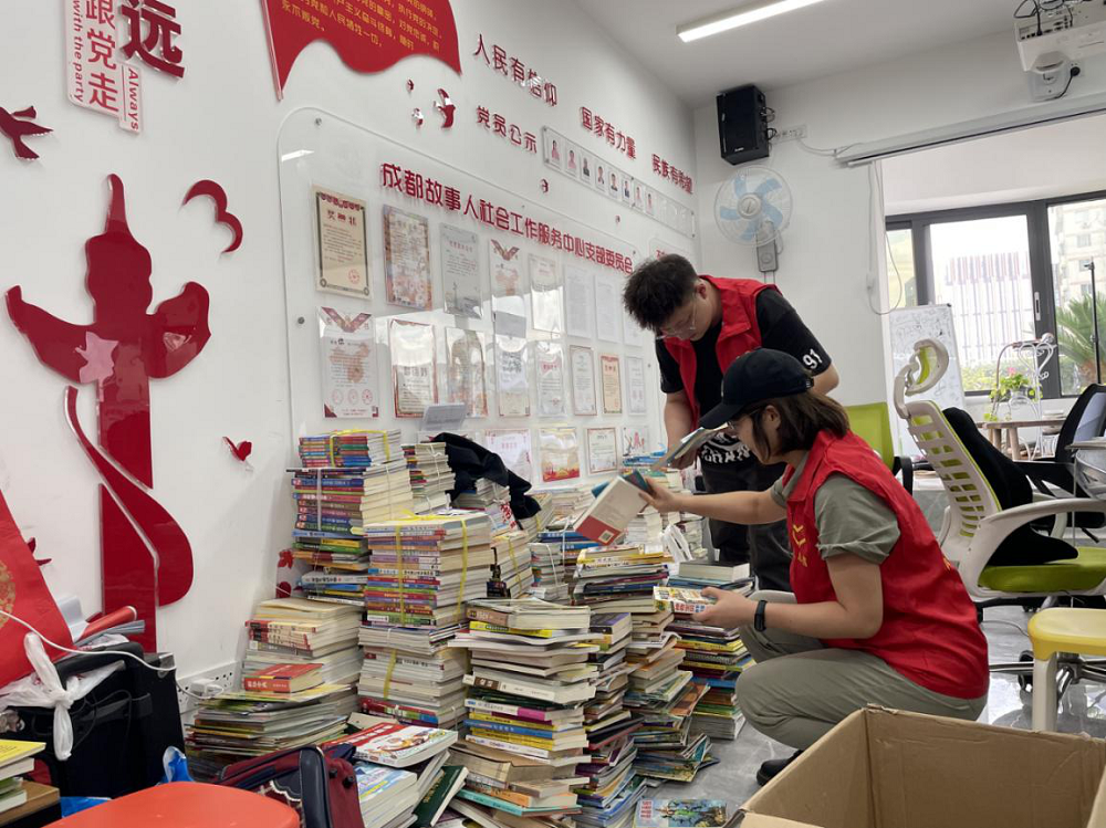 活动初期团员青年们通过“志愿四川”线上平台进行报名;捐赠的书籍由志愿者们交党委组织部进行登记、汇总,党群工作部统一送至成都故事人社会工作服务中心总队;成都故事人社会工作服务中心总队将物资送往甘孜阿坝等藏区学校,并对捐赠学校或班级进行冠名挂牌。