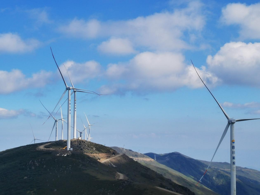 2021年10月15日22时23分,四川能投风电公司美姑沙马乃托一期风电场全面投产发电。