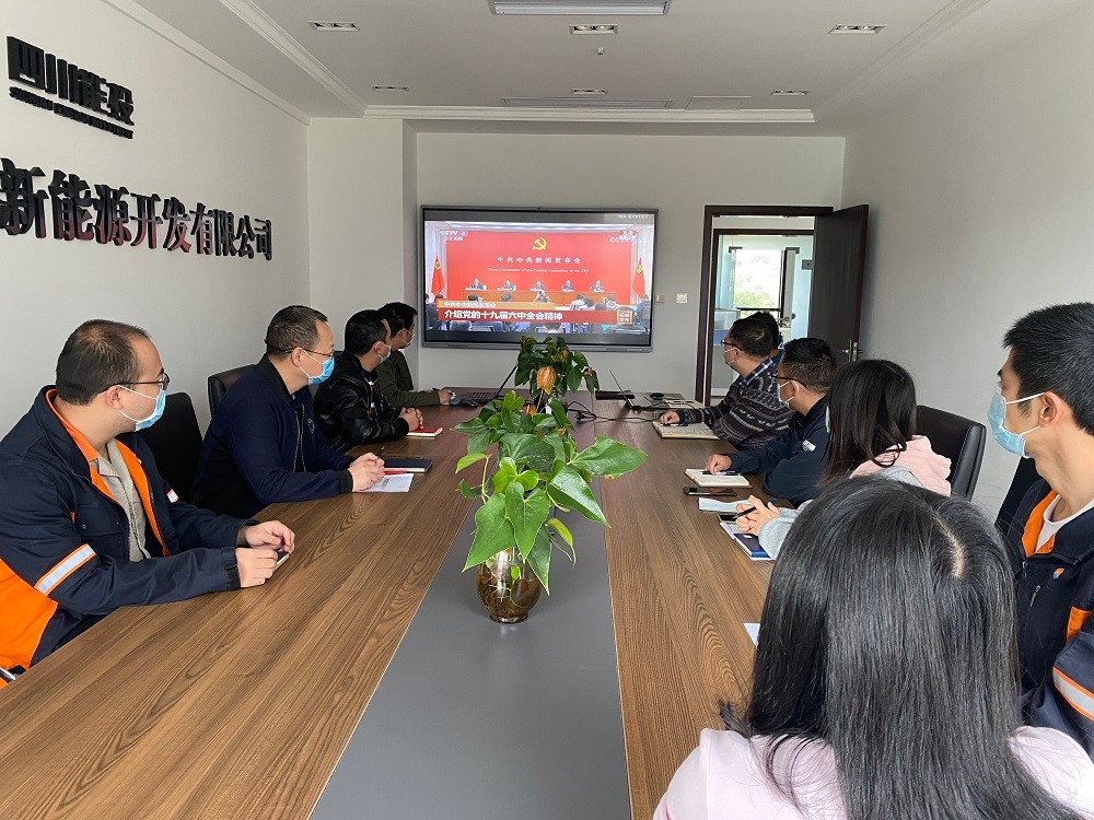 11月12日上午,中共中央举行新闻发布会,介绍党的十九届六中全会精神。四川能投风电公司两级党组织按照上级统一部署及时收看新闻发布会直播,认真学习领会十九届六中全会精神。