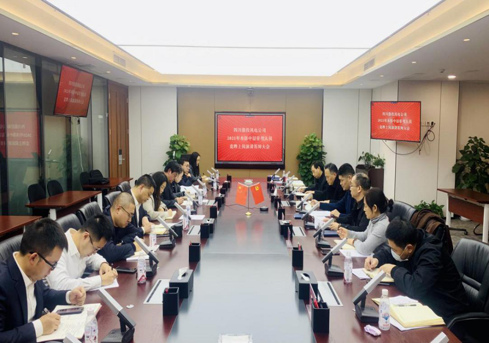 为落实国有企业三年改革方案,进一步优化干部队伍建设,为公司高质量发展提供人才保障,12月10日,四川能投风电公司召开中层管理人员竞聘上岗演讲答辩大会,公司领导班子,各部门负责人参加。