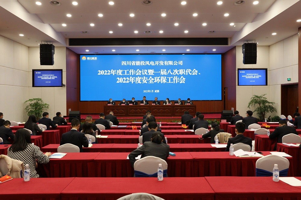 1月21日,四川能投风电公司召开2022年工作会暨一届八次职代会、2022年安全环保工作会。会议由公司党委副书记李锡建主持,四川能投风电公司领导班子、公司本部及所属项目公司分别通过现场或视频的方式参加会议。