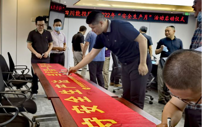 随后,公司在蓉领导班子成员和部门负责人在公司2022年“安全生产月”活动宣传横幅上签下了自己的名字,作为对本次安全月主题的郑重承诺。公司所属会东、盐边、美姑公司的主要领导和干部员工,在生产建设现场同期开展了“安全生产月”启动仪式,安全生产宣誓等活动。
