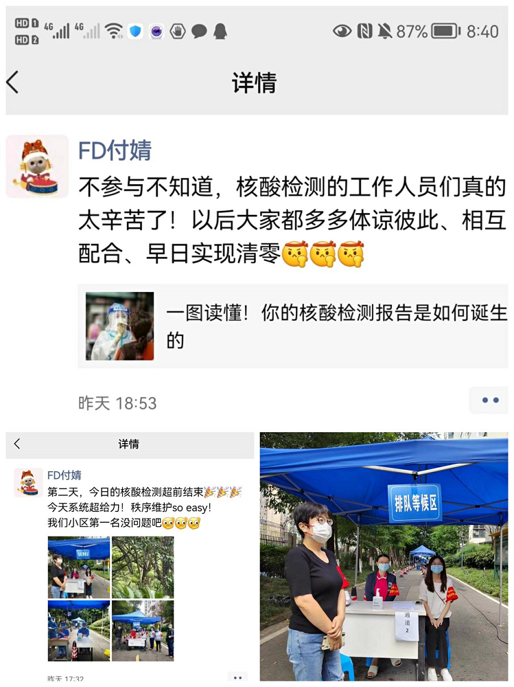 作为一名高三学生家长,安监部职工刘洁积极加入抗疫志愿者,连续三天当从秩序维护、信息录入做到样品采集,越来越熟练,越来越全面,对防疫工作感受非常深刻。