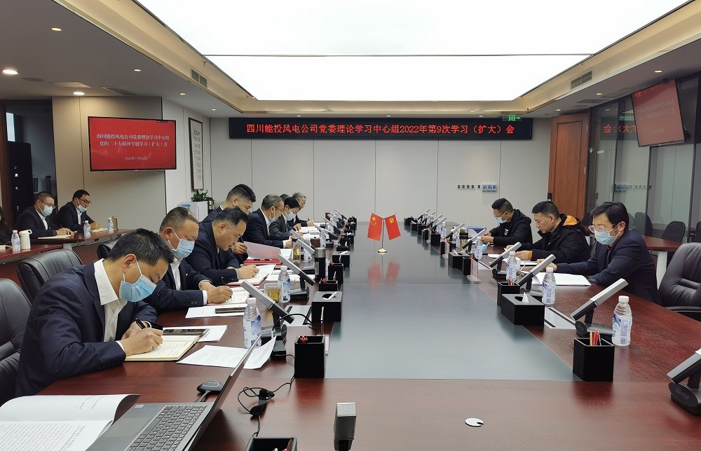 11月30日下午,四川能投风电公司党委理论学习中心组组织开展了2022年第9次学习(扩大)会,专题学习党的二十大精神。由四川能投集团总会计师王洪带队的集团督导组一行列席旁听指导,风电公司领导班子成员、助理级管理人员及各部门副职以上中干参加会议。
