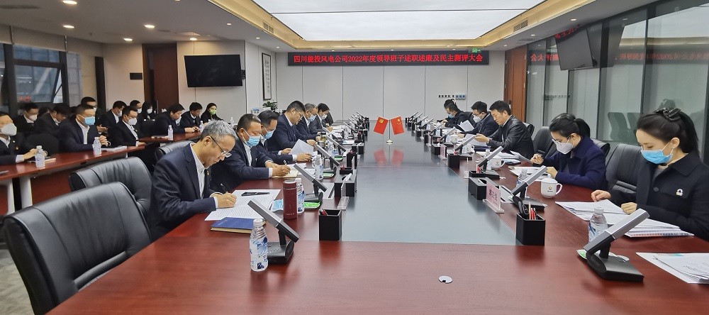 1月11日下午,四川能投风电公司召开2022年度领导班子述职述廉及民主测评大会。省纪委监委驻能投集团纪检监察组副组长、办公室主任,能投集团纪委副书记、纪委办公室主任权敏宗率考核组成员出席会议并讲话。考核组听取了风电公司党建及党风廉政建设、选人用人、领导班子及成员2022年度述职述廉报告,并组织民主测评,对口检查业务资料。风电公司领导班子成员、中层管理人员、职工代表、所属项目公司代表共30人参加。会议由四川能投风电公司党委书记、董事长、总经理吴平主持。