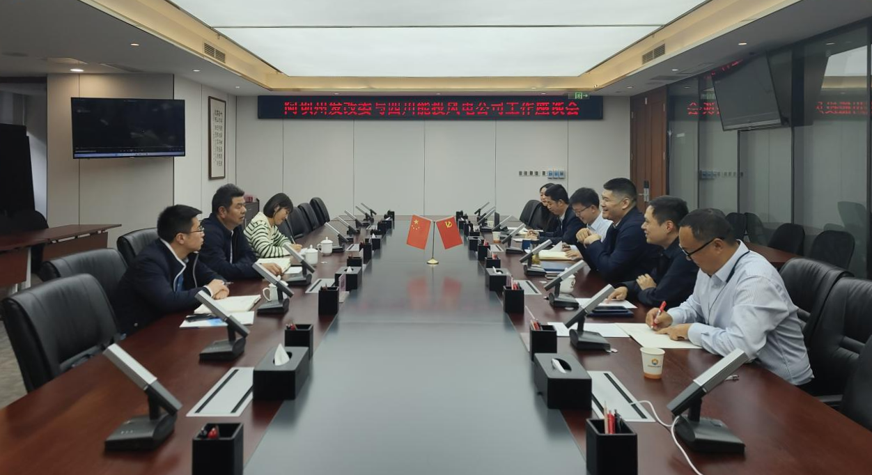 10月23日,阿坝州发展和改革委员会党组成员、副主任邓运林率队到访四川能投风电公司,双方就阿坝州光伏资源开发利用进行了交流座谈。四川能投风电公司党委书记、董事长吴平,集团公司投资发展部副部长周磊参加座谈。
