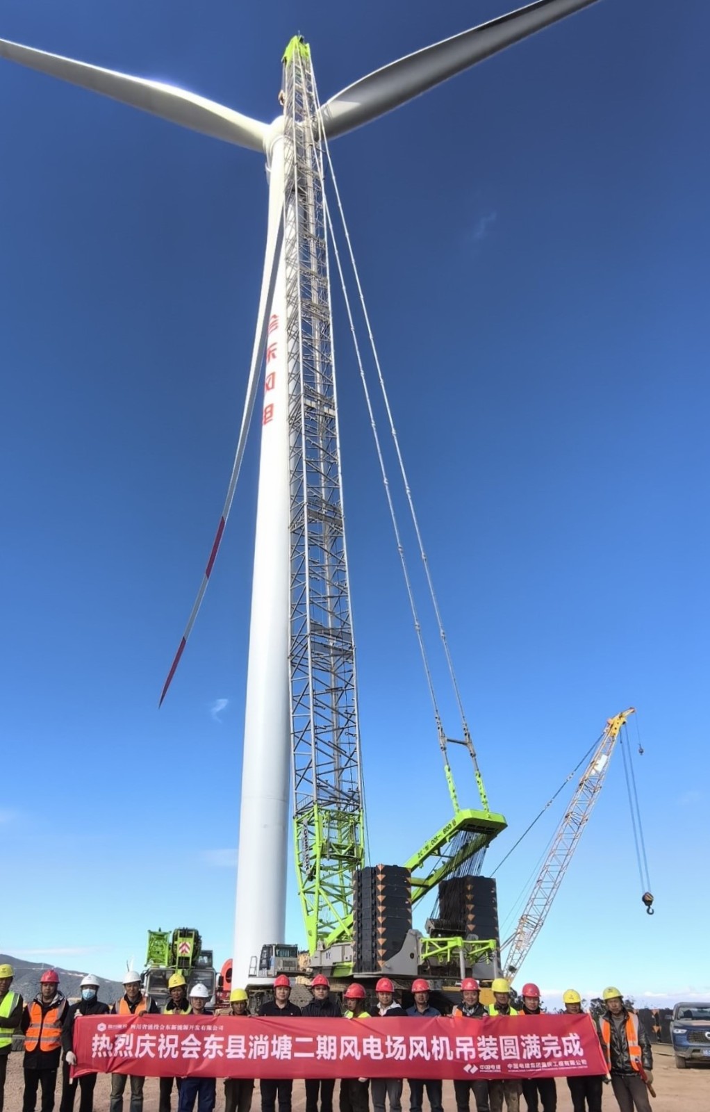 11月12日上午,随着1号风机吊装完成,四川能投风电会东公司淌塘二期风电场30台机组吊装任务全部圆满完成。淌塘二期风电场总装机容量120兆瓦,共计30台风力发电机组,首台机组于2023年4月28日开始吊装。