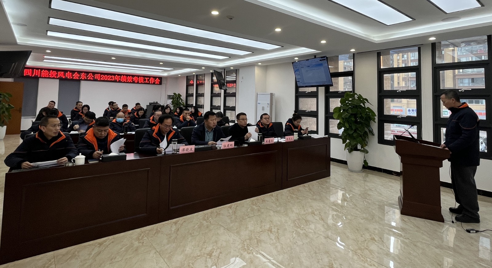 为充分调动公司员工干事创业的积极性和主动性,进一步完善业绩考核机制,1月20日至21日,四川能投风电会东公司在营地和升压站分别组织召开2023年度全员述职考核工作会。公司领导班子成员及全体员工参加。