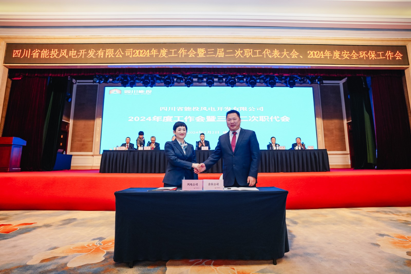 2月2日,四川能投风电公司在成都召开2024年工作会暨三届二次职代会及2024年安全环保工作会。会议由公司党委副书记、职工董事、工会主席李锡建主持,风电公司领导班子,公司本部、所属项目公司除值班值守外的各级干部职工参加会议。