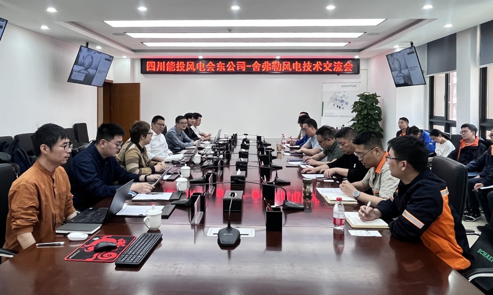为有效提升现场设备管理,四川能投风电会东公司邀请FAG主轴生产厂家,于4月12日在公司开展技术交流会。FAG隶属于德国舍弗勒集团,为国际一线风电机组专业轴承品牌。中国区风电终端客户业务发展经理郭晓峰带领舍弗勒集团7位技术工程师参加此次技术交流会,会东公司党支部委员、总经理米凌志、运管部部长曹德友及相关技术人员共20余人参加交流。