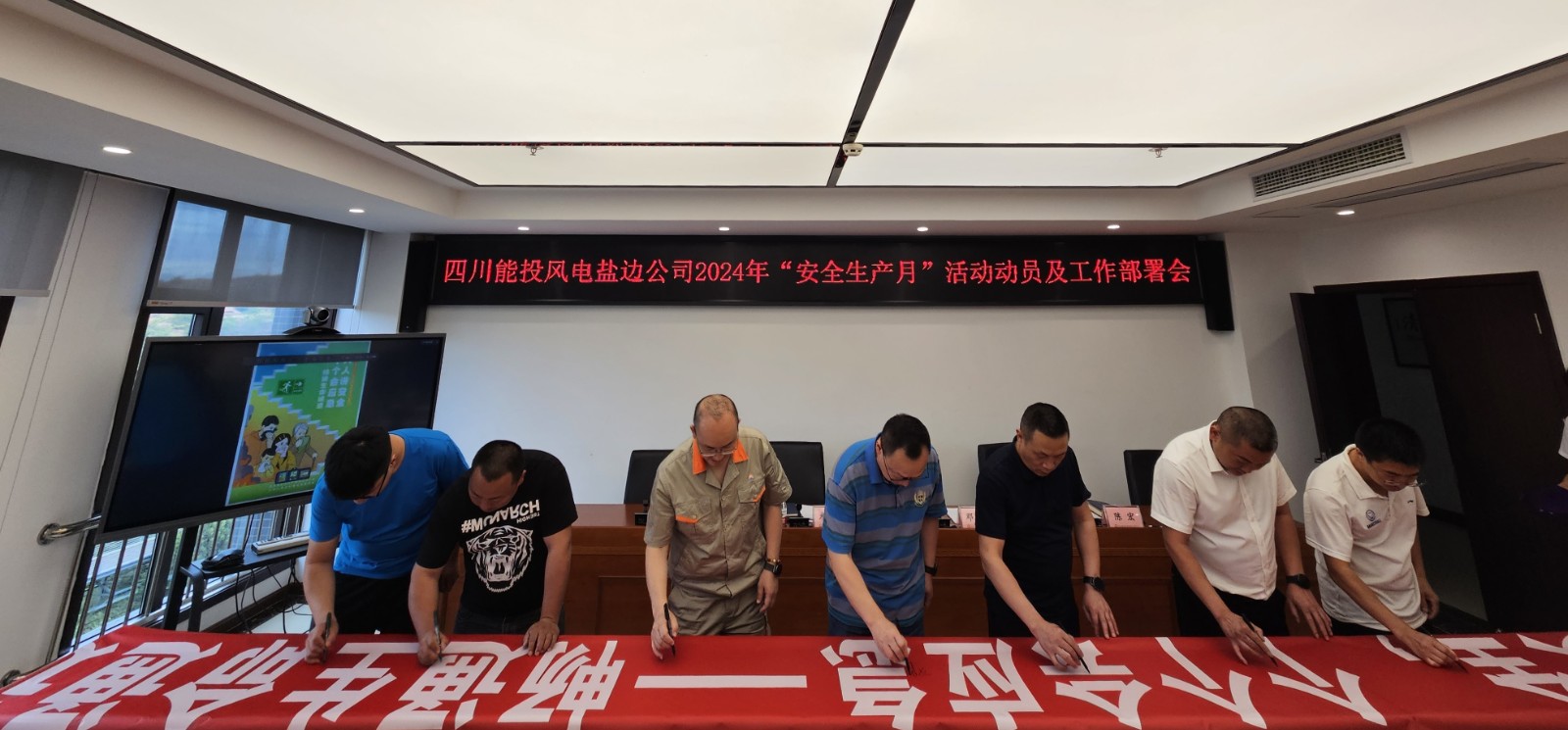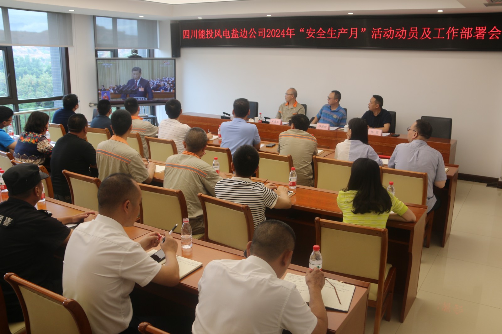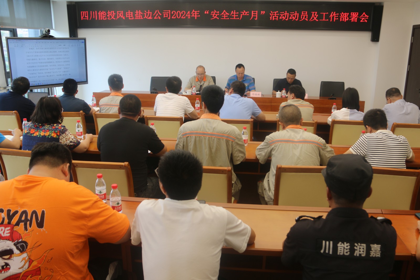 2024年5月27日下午,在第23个全国“安全生产月”到来之际,四川能投风电盐边公司组织全体员工及各外协单位人员,召开2024年度“安全生产月”活动启动及工作部署会。