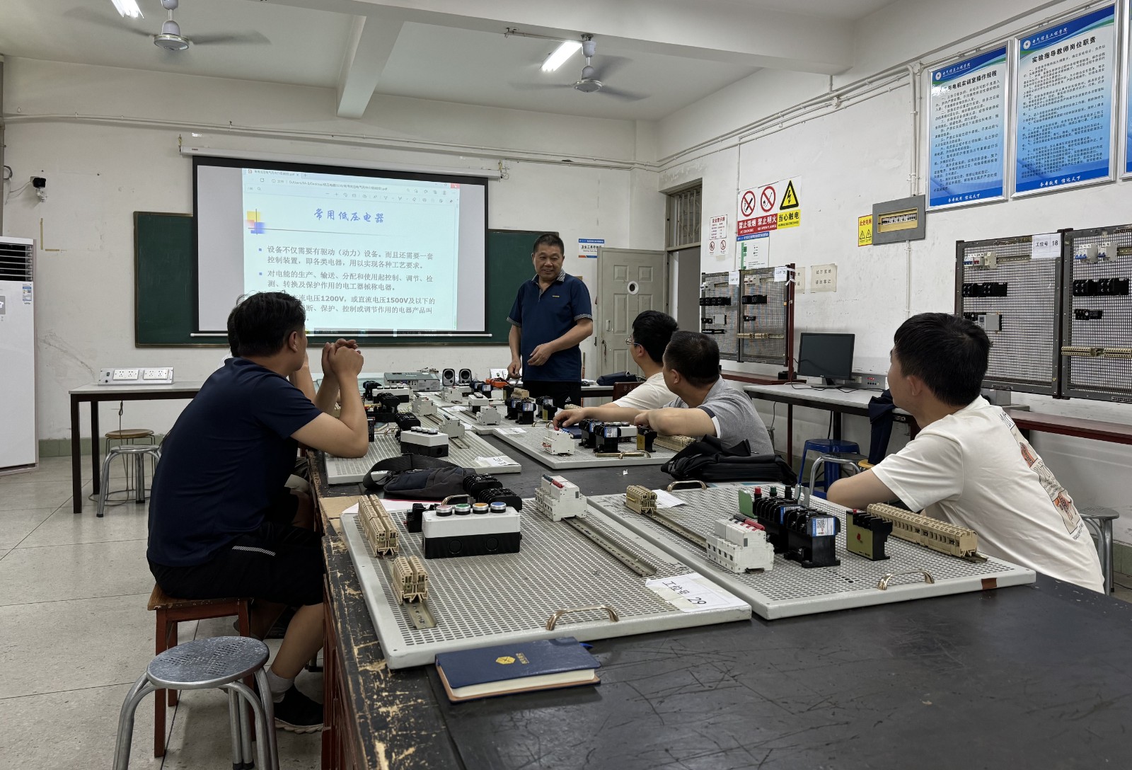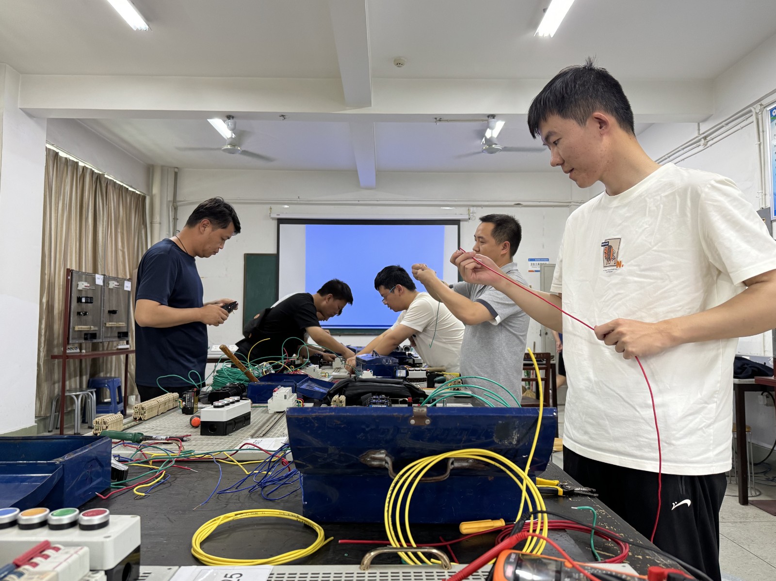 实操培训现场,学院老师以电气设备实物从原理、性能、结构、控制逻辑、组装、试验等方面细致讲解,认真回复学员的问题,大家抓住机会认真听讲、积极互动、实际操练,努力提升自身的技能水平,现场学习氛围浓厚。