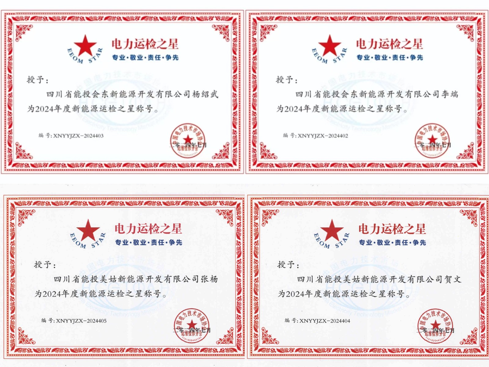 榜样力量,激励前行。近日,由中国电力技术市场协会运维检修分会主办的2024年新能源典型故障案例交流年会暨2024年新能源运检之星表彰大会在内蒙古乌兰察布市隆重举行,大会揭晓了2024年度新能源“运检之星”名单,四川能投风电会东公司杨绍武、李端,美姑公司张杨、贺文荣获全国“运检之星”称号。