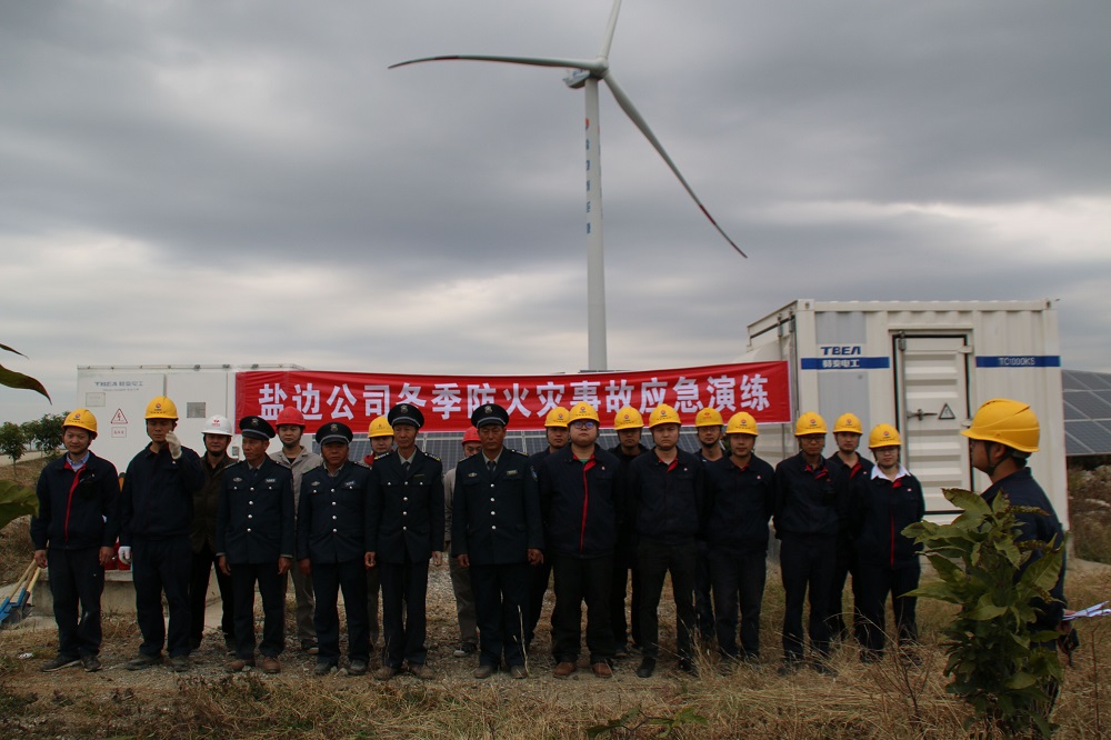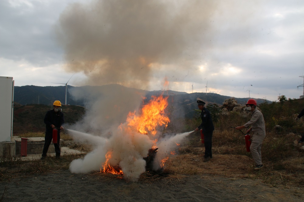 按照公司年度工作计划,结合本地区冬季火灾频发实际情况,能投风电盐边公司于12月16日组织运管部、生产辅助岗位人员、各外委施工单位在盐边红山光伏场区开展了冬季防火应急演练。