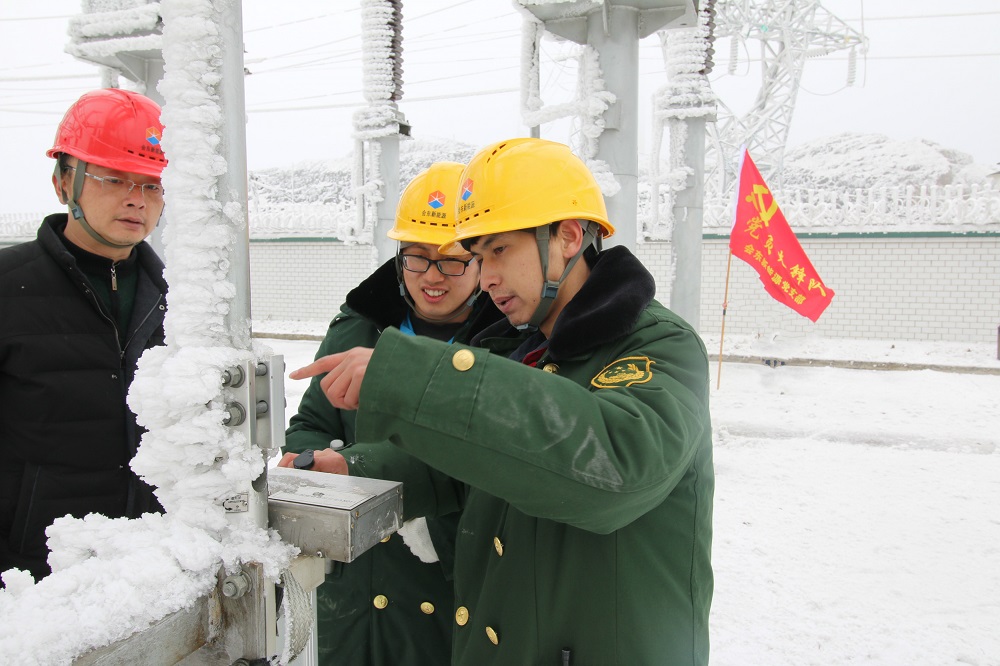 在会东县白雪皑皑的风电场及升压站内,“党员先锋队”的旗帜显得格外鲜艳,格外显眼,在前往风电场路途中,由于进山路面凝冻湿滑导致车辆无法到达巡线点,党员先锋队员们不畏严寒,勇当先锋、争作表率,翻山越岭徒步到35kV线路铁塔处,来不及片刻休息,立即投入到观冰除冰工作状态,立即对线路覆冰厚度、杆塔基础、线路通道进行详细的查看和清理,又继续赶往下一个战点。从第一基杆塔到最后一基杆塔,从主线到支线,他们不放过任何安全隐患点,不放过任何一个安全细节。