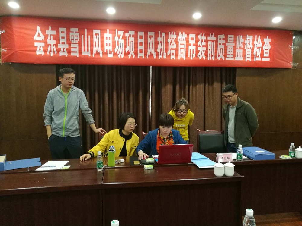 4月9日-10日,四川省电力质检中心监检组对能投风电会东雪山风电场项目进行风机塔筒吊装前质量监督检查。