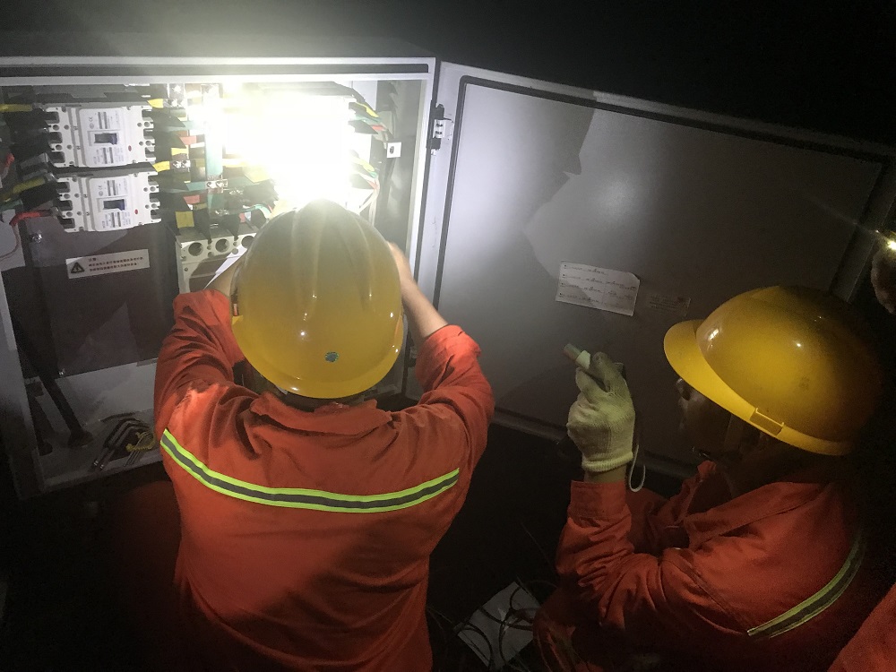 在检修现场,为缩短停电时间,从凌晨至深夜,运维人员严格按照前期准备好的检修方案,执行停送电操作,消除缺陷、装置试验、紧固螺栓、防锈处理、清除瓷瓶柱污垢、油品取样、卫生清扫……。在运检人员及协作单位的共同努力下,顺利完成了220kV送出线路和6条35kV集电线路的缺陷处理及升压站各项设备的“体检”工作。