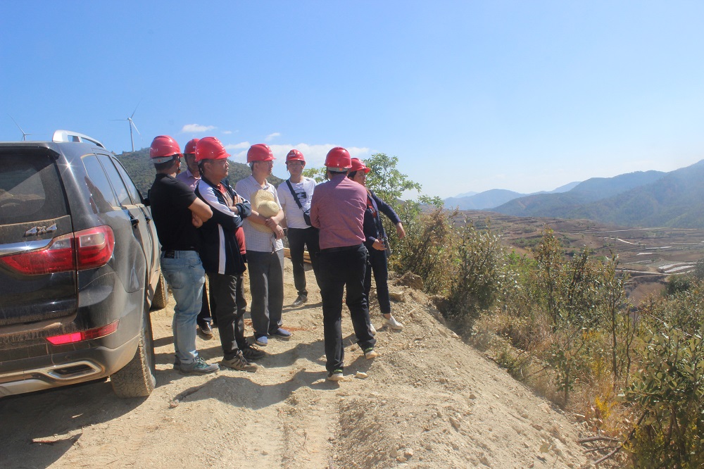 4月9日上午,攀枝花市盐边县经济信息化和科学技术局、水利局、和爱乡政府相关负责人一行对能投风电盐边大面山三期风电场道路施工现场进行了检查。