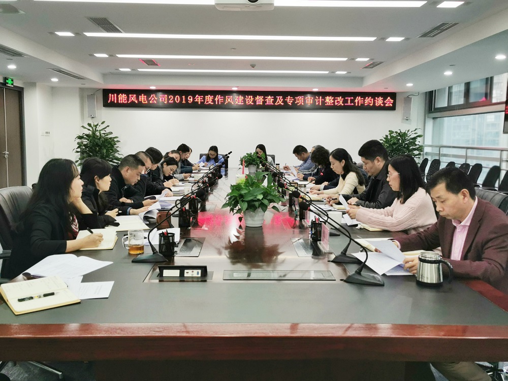 10月21日下午,川能风电公司以问题为导向,针对2019年作风建设督查、专项审计等工作中发现的问题,召开了整改工作集体约谈会。公司领导班子成员,相关部门中层干部,所属项目公司主要负责同志参加了会议。