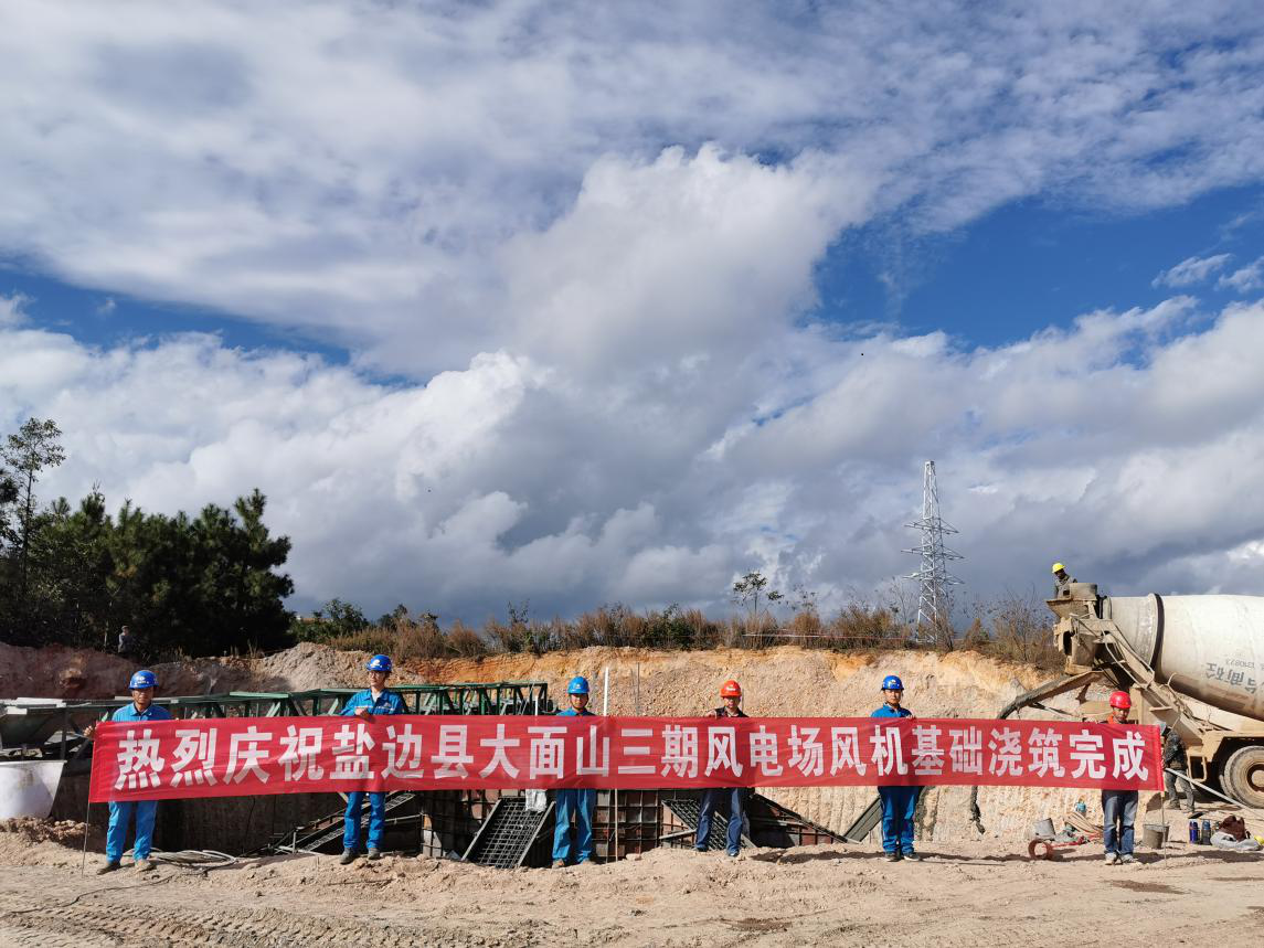 在开挖和混凝土浇筑过程中,盐边公司一手抓进度管理,及时协调解决用地补偿、人力投入不足和雨季施工难度大等问题;一手抓安全和质量,规范现场管理,确保施工安全、质量、工期始终处于受控状态。风机基础和铁塔基础浇筑工作的顺利完成,为后续风机吊装和铁塔组立放线赢得了宝贵时间,为项目早日投运奠定了坚实的基础。