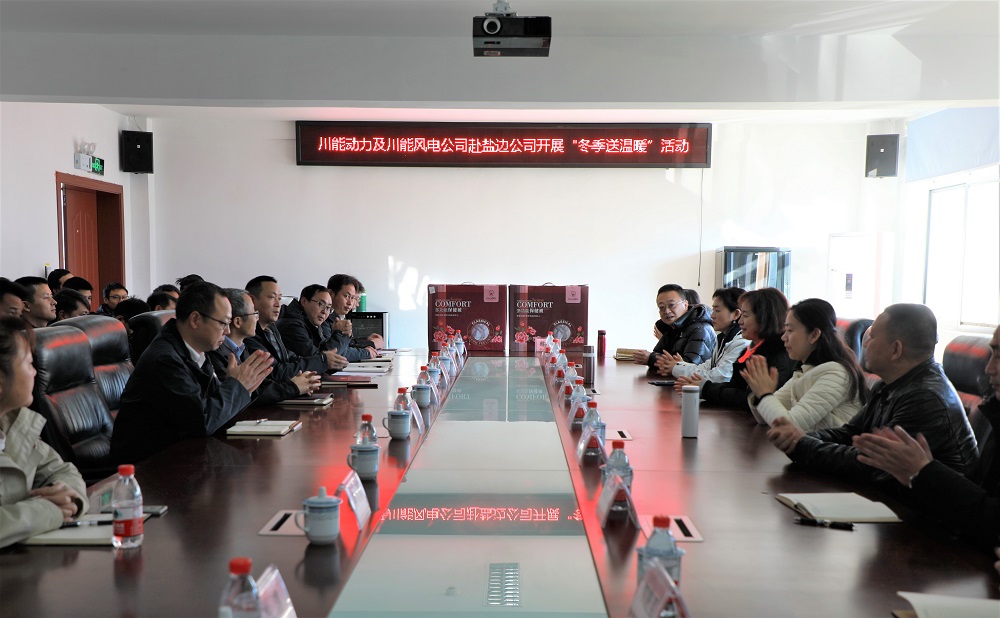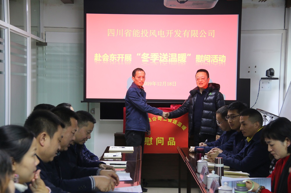 12月16日至20日,川能动力党委副书记熊娟、川能风电公司纪委书记林惠、川能风电公司工会主席周述谦带队组成川能动力和川能风电公司联合工作组开展走基层送温暖慰问活动。工作组先后深入盐边、会东、美姑新能源公司各风电场,检查了安全生产情况、项目建设情况,看望慰问生产建设一线职工。并代表川能动力和川能风电公司党委、经营领导班子和工会向全体一线干部员工致以诚挚的问候。