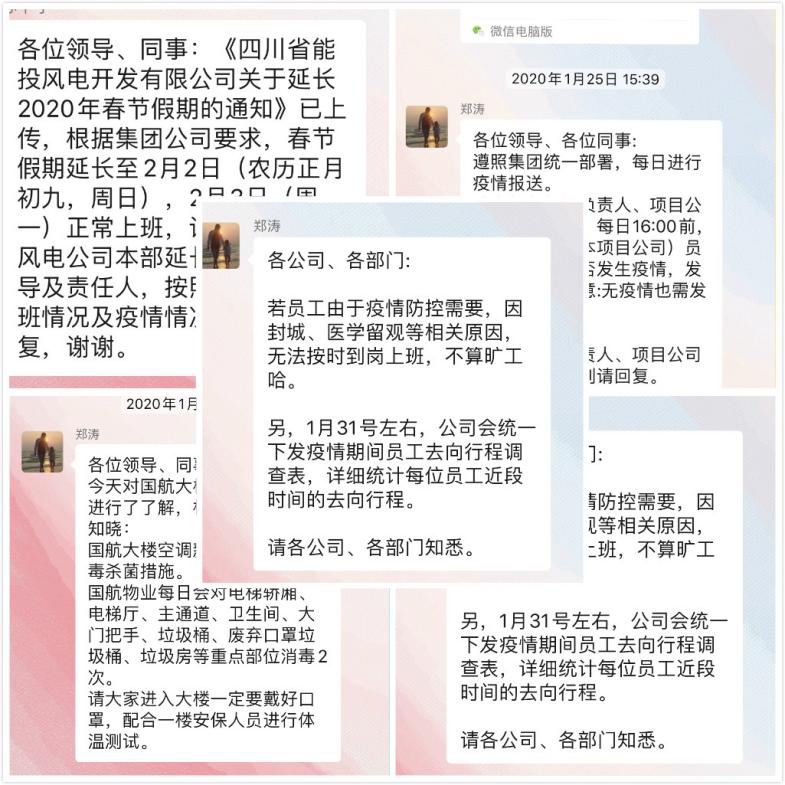 新型冠状病毒感染的肺炎疫情发生以来,在以习近平同志为核心的党中央坚强领导下,全国打响了一场防控疫情的人民战争。疫情就是命令,防控就是责任。川能风电公司在疫情防控“全国一盘棋”格局中,严格落实政府防控疫情的各项要求,把疫情防控作为当前最重要的工作,以最大的社会责任感打响了这场防控疫情保卫战!做到守土有责、守土担责、守土尽责,与全国人民心手相连、共克时艰,为全国疫情防控作出应有贡献。