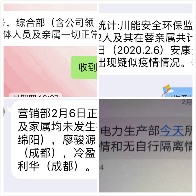 疫情防疫小组坚持每日跟踪全员健康状况,定时做好各部门、各项目公司全体员工及亲属疫情信息统计,随时掌握最新动态;积极对接物业公司,配合做好办公区、食堂每日的防疫消杀工作;同时,及时编制公司《新型冠状病毒感染的肺炎疫情防控管理暂行办法》《突发新型冠状病毒肺炎疫情事件处置方案》《新型冠状病毒防疫指南》等制度文件,指导公司全员科学、规范开展防疫工作。