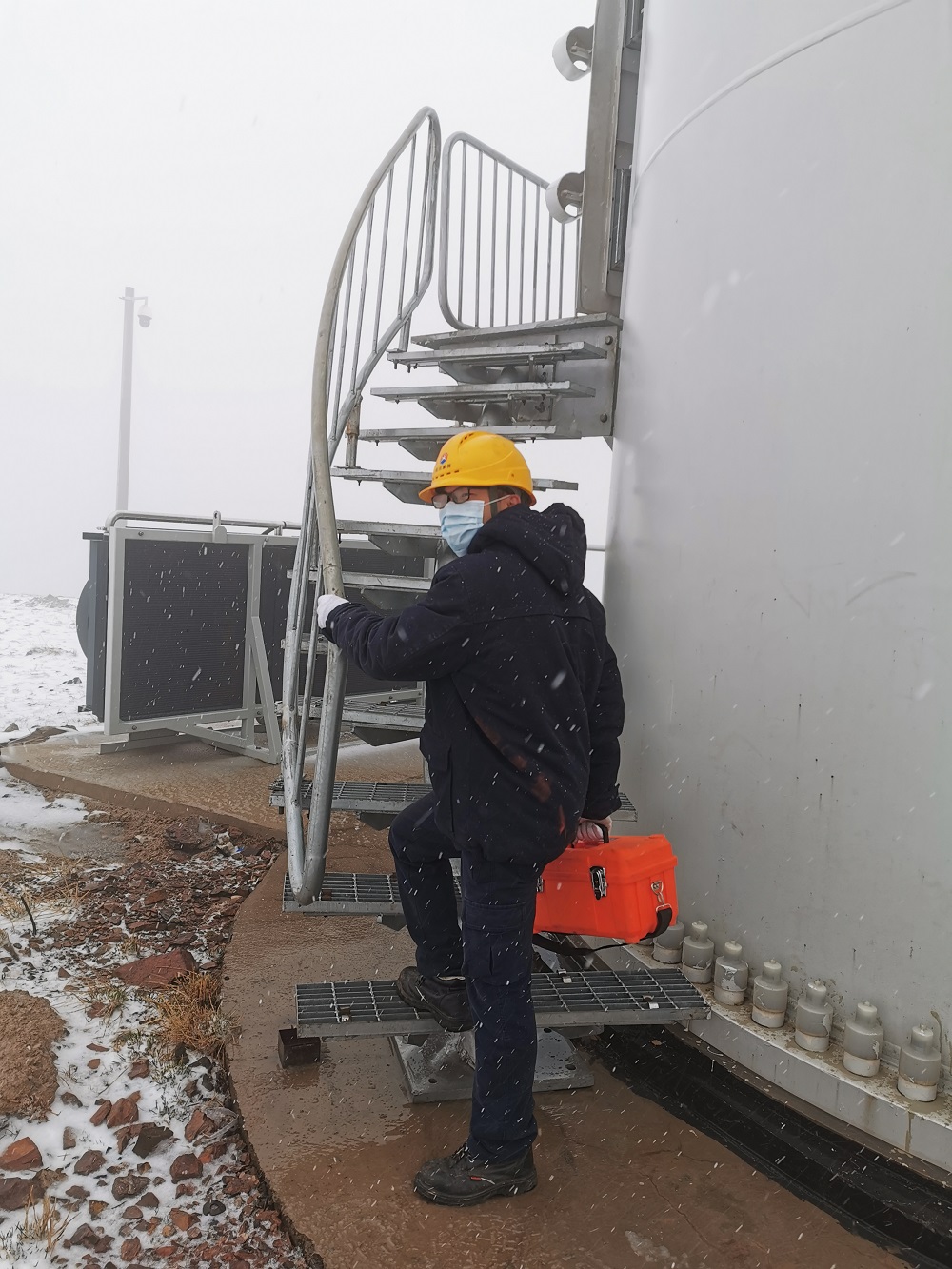 是他们,坚守一线的运维人员热血融冰、冒着刺骨的寒风、踩着还未熔化的冰雪,在海拔3000多米的山脊上完成2km光纤敷设,并在低温条件完成光纤熔接,恢复了风机通讯,保证机组安全。