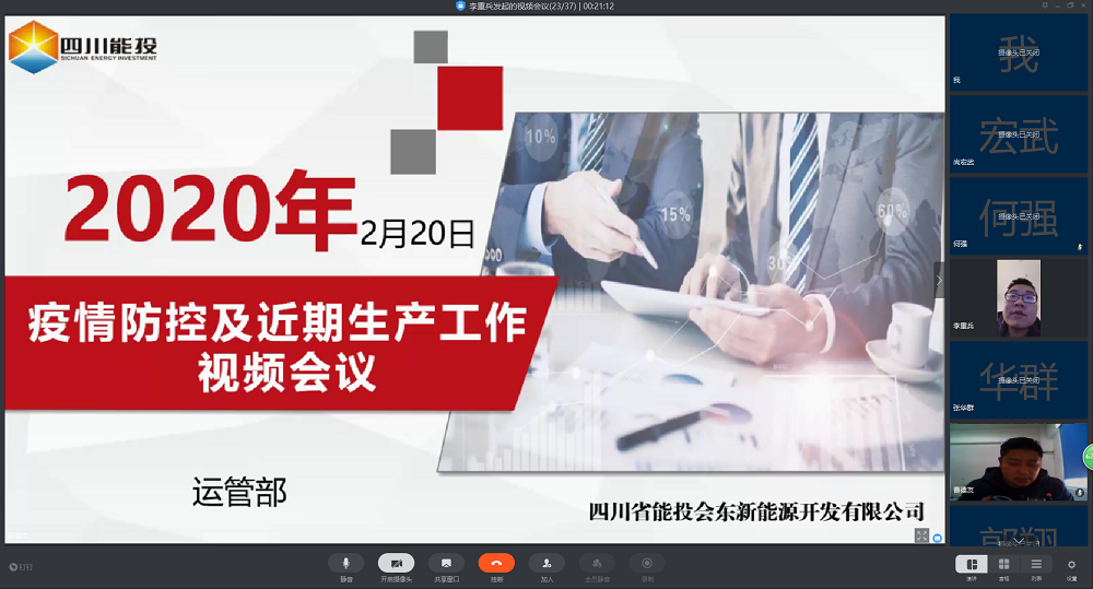 会议网络视频化,既做到疫情防控管理的要求保证人员不接触,又能高效完成会议内容。2月20日,运管部召开疫情防控及近期生产工作视频会议,会议学习传达了近期的抗疫保电、安全生产的文件;总结了近期安全生产工作;安排部署了下一阶段的安全生产工作。副总经理郭翔参加会议并做出要求:正值抗疫保电攻坚期,大家认真落实各项措施要求不能松懈。特别是升压站作为疫情防控重点区域,要做好隔离。
