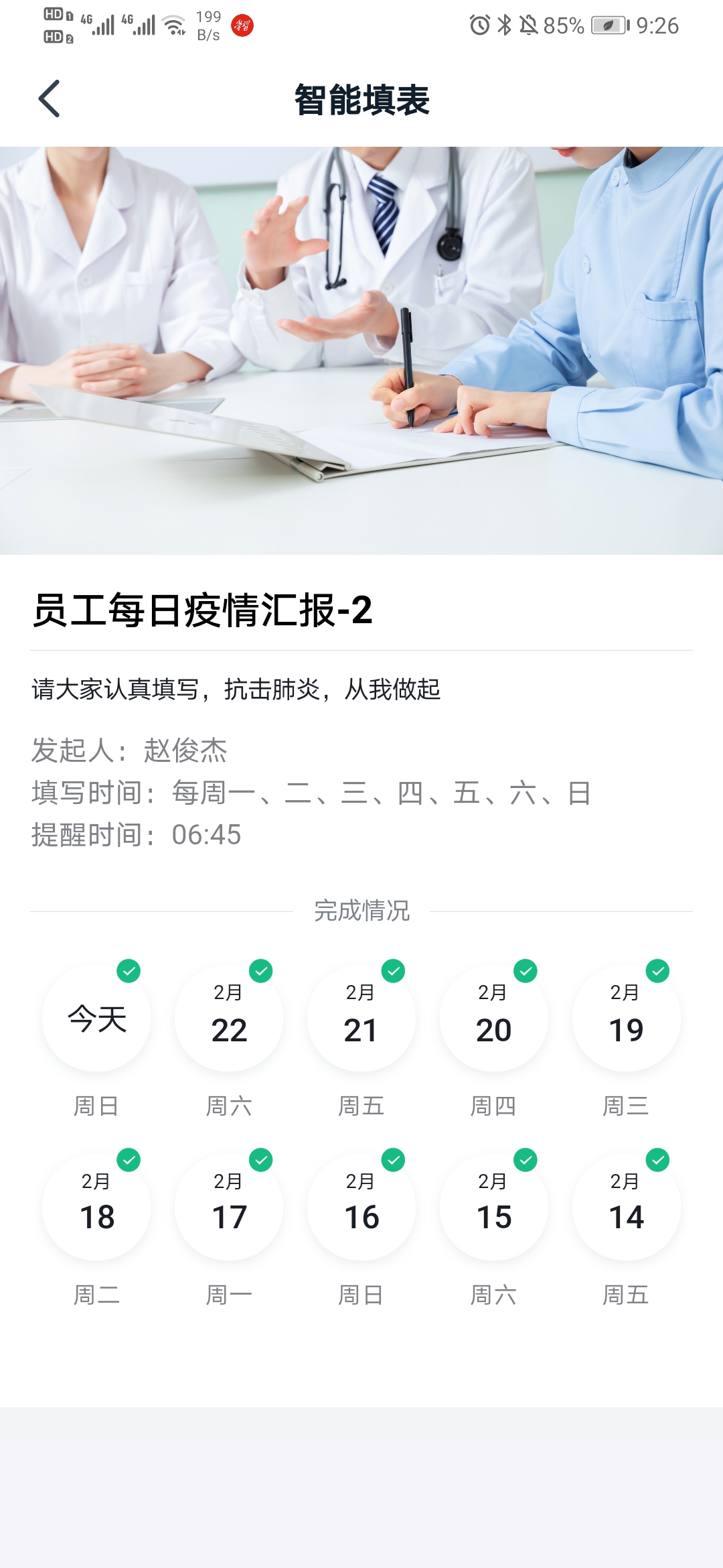 在“疫情”防控工作中,面对公司运维人员数量较多、所处位置分散等问题给管理带来的困难,公司运管部采用所有人员每日手机智能填报自身疫情情况,通过钉钉自动完成疫情情况统计后,根据统计结果进行上报,做到疫情情况上报无遗漏、无错报;同时手机定位打卡,完成对运维人员的行程管理,做到生产运维人员防疫管理全覆盖。