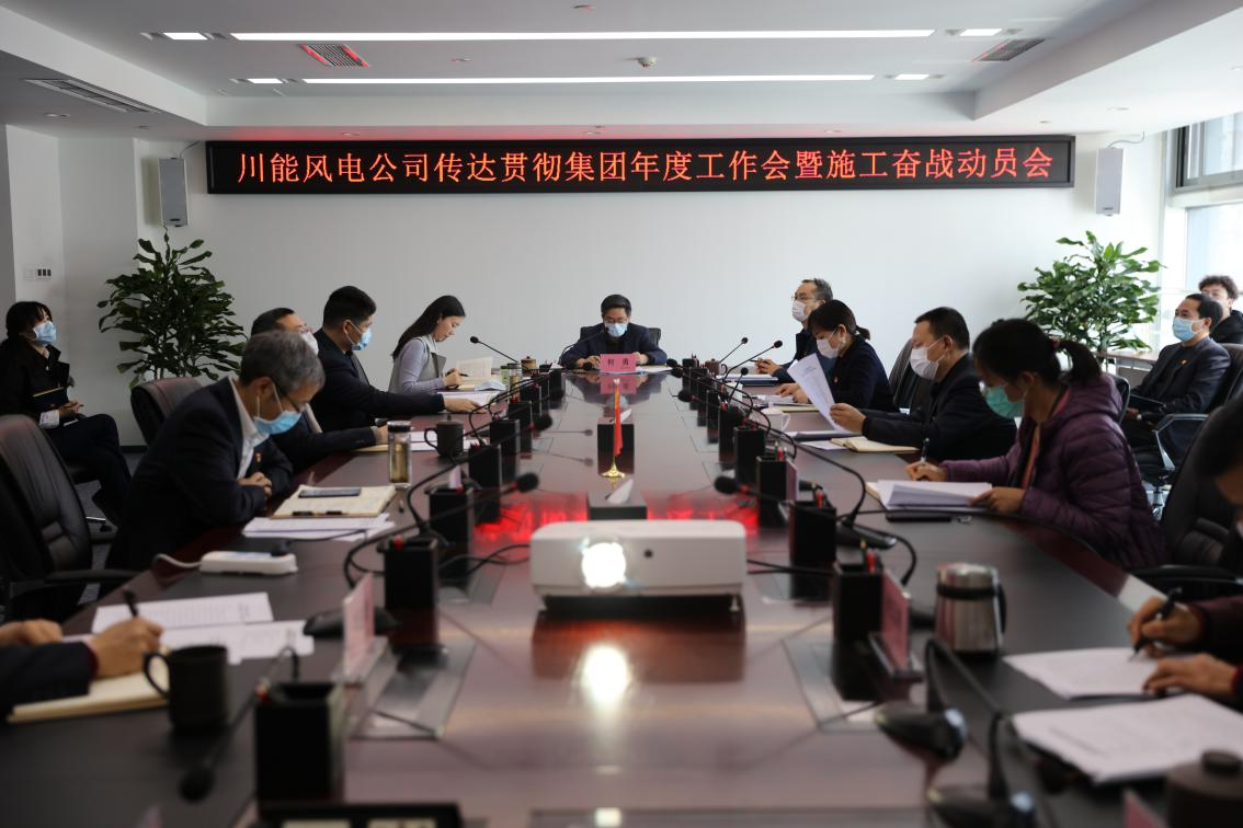 2020年3月19日,川能风电公司在能投第二办公区召开会议传达贯彻能投集团2020年度工作会会议精神并部署“施工奋战100天”活动。会议由党委副书记李锡建主持。