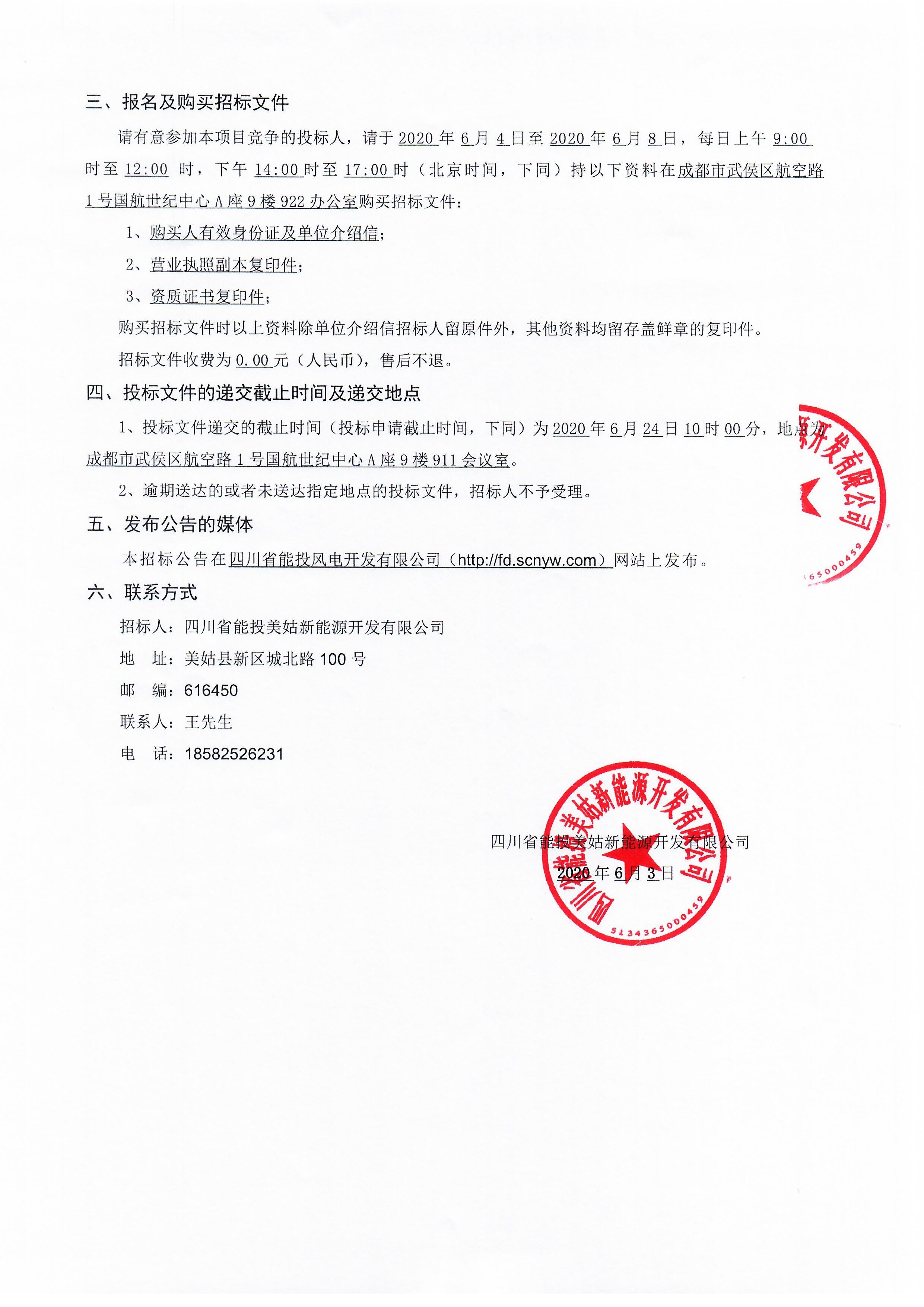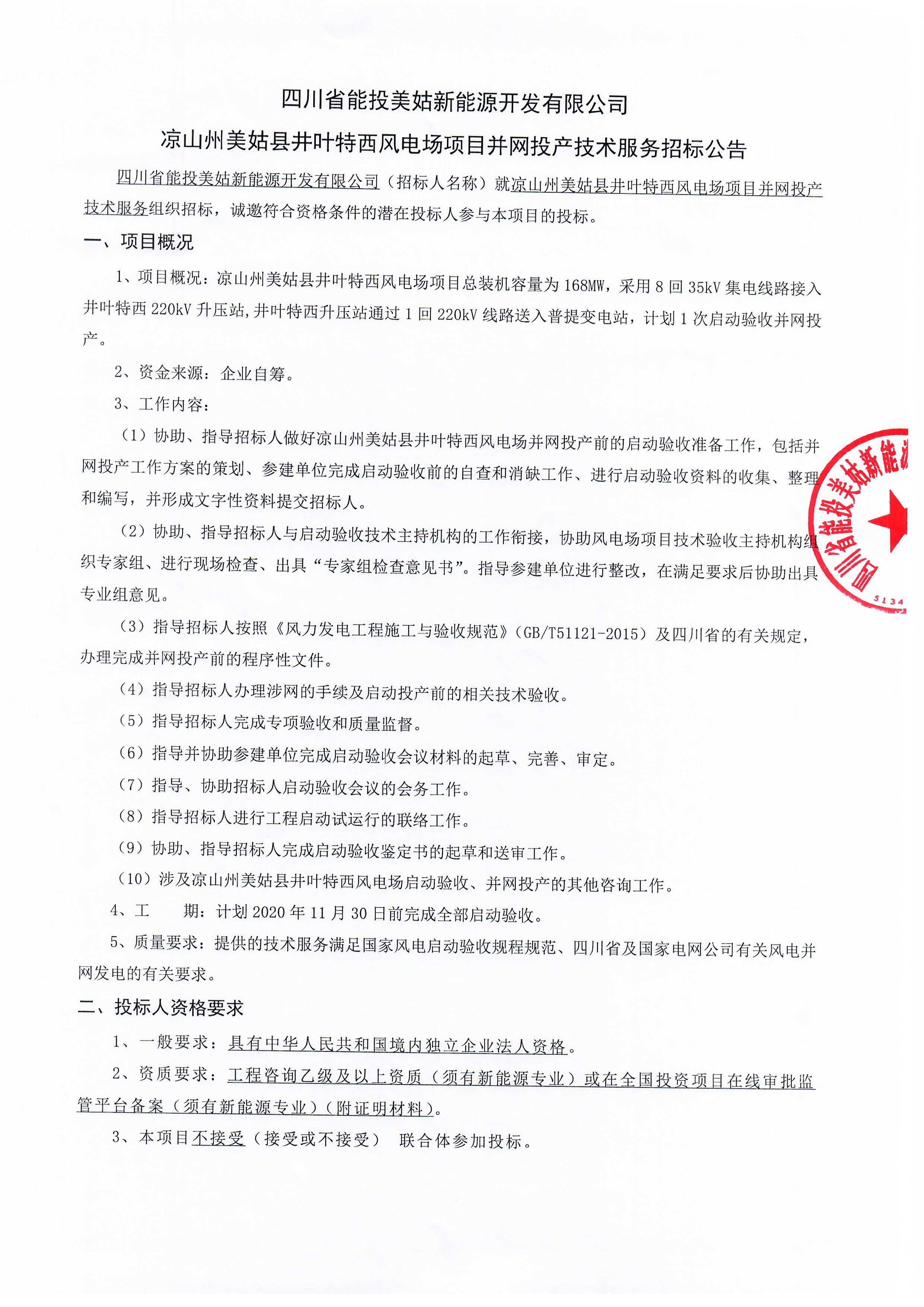 四川省能投美姑新能源开发有限公司(招标人名称)就凉山州美姑县井叶特西风电场项目并网投产技术服务组织招标,诚邀符合资格条件的潜在投标人参与本项目的投标。