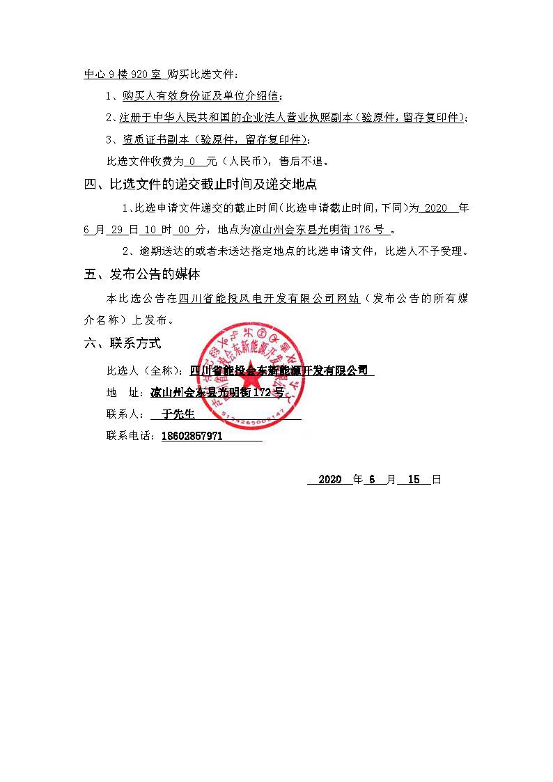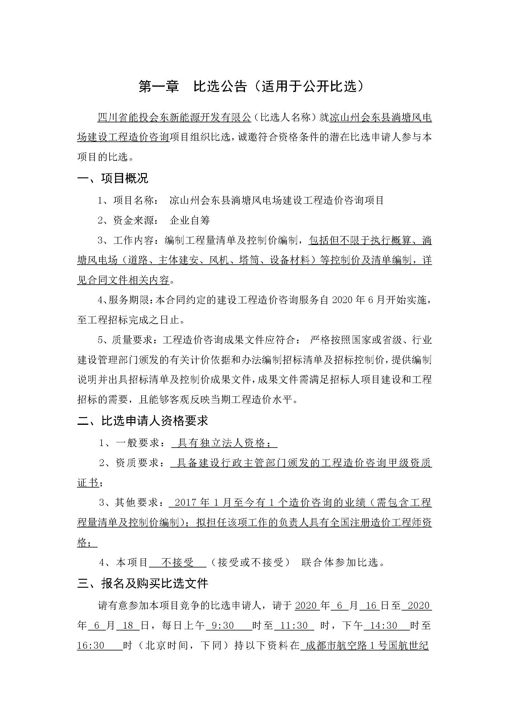四川省能投会东新能源开发有限公(比选人名称)就凉山州会东县淌塘风电场建设工程造价咨询项目组织比选,诚邀符合资格条件的潜在比选申请人参与本项目的比选。