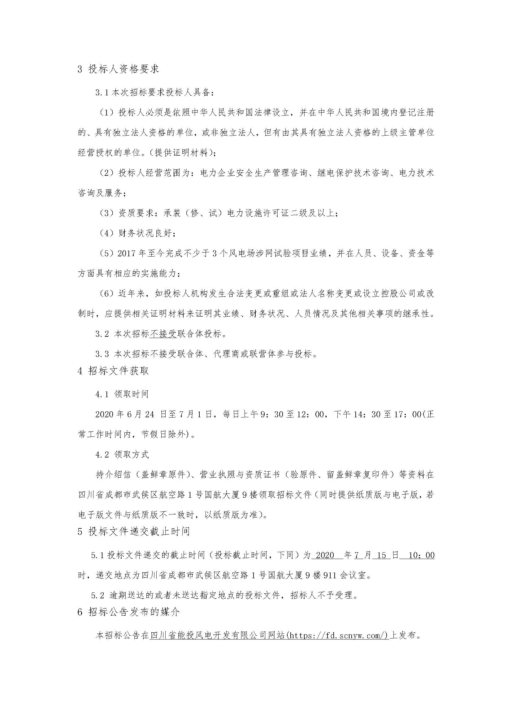 (5)2017年至今完成不少于3个风电场涉网试验项目业绩,并在人员、设备、资金等方面具有相应的实施能力;