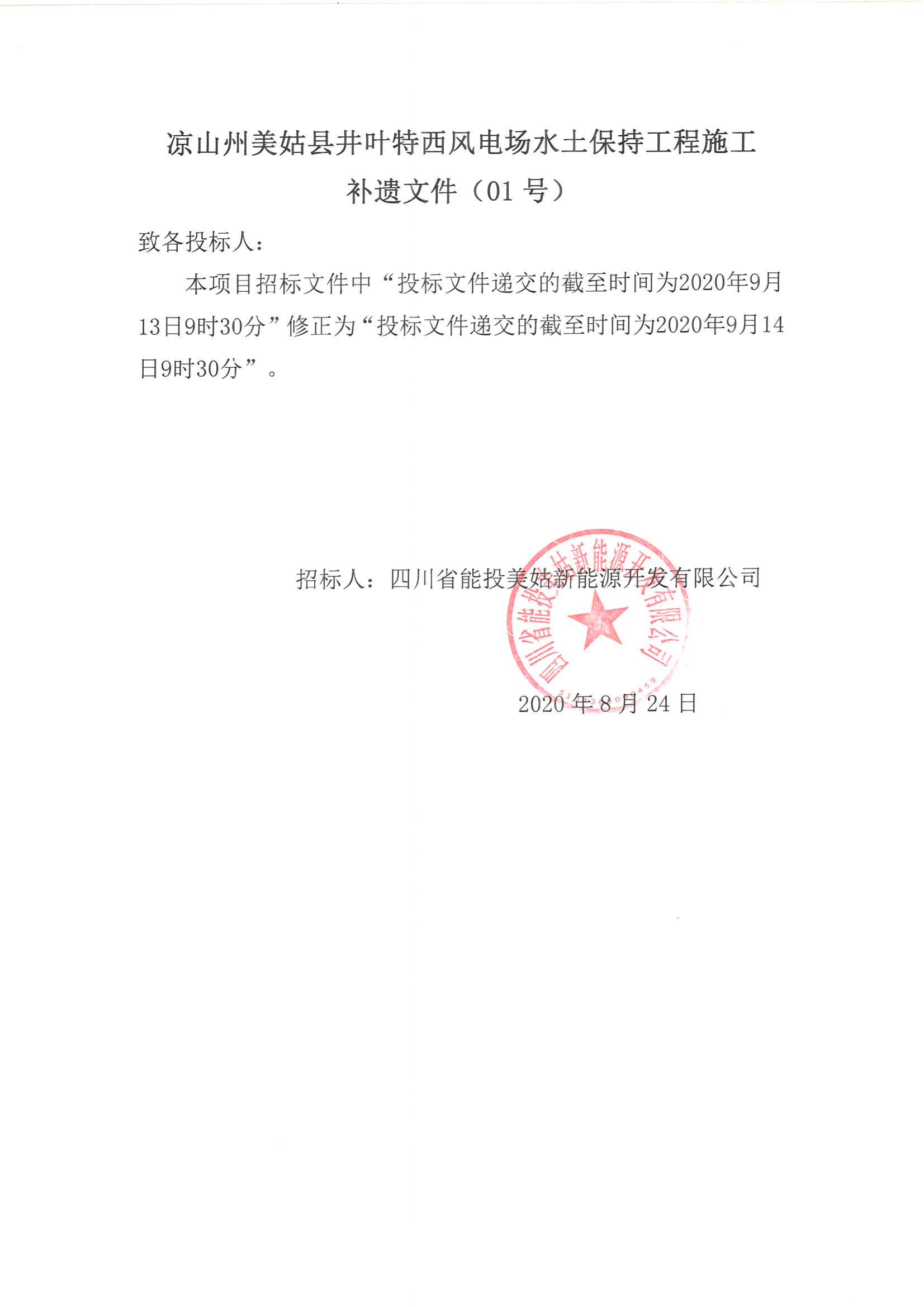 本项目招标文件中“投标文件递交的截至时间为2020年9月13日9时30分”修正为“投标文件递交的截至时间为2020年9月14日9时30分”。