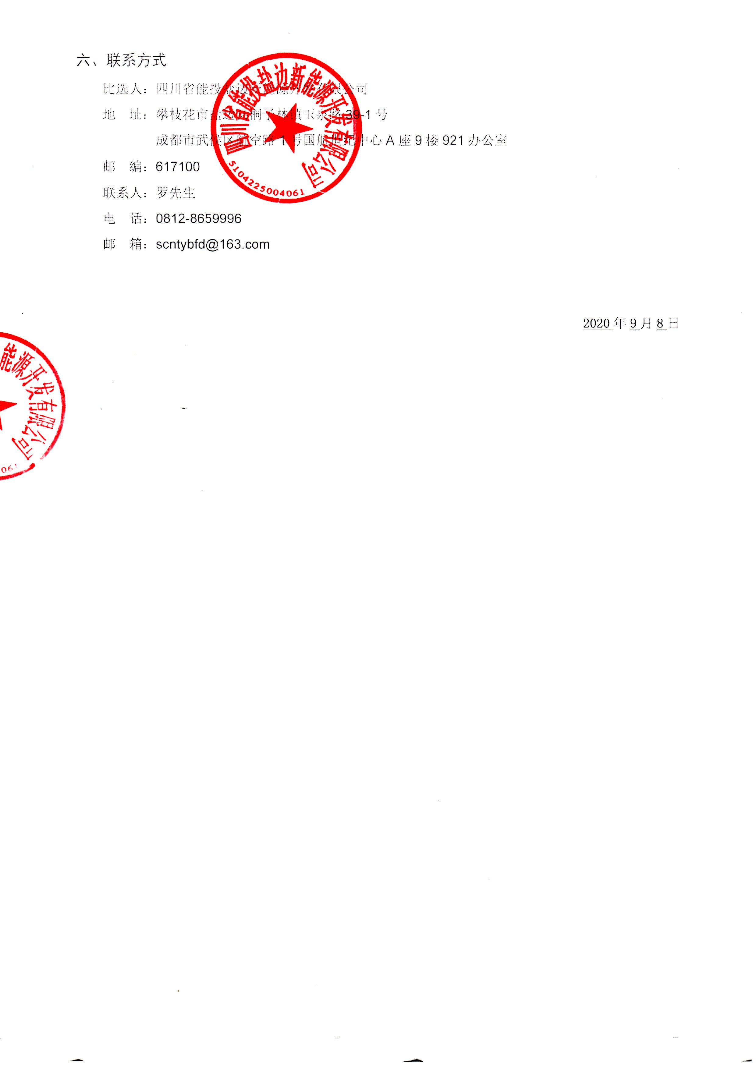 1、比选申请文件递交的截止时间(比选申请截止时间,下同)为2020年9月18日10时30分,收件地点为攀枝花市盐边县红格镇温泉大道133号四川省能投盐边新能源开发有限公司4楼。
