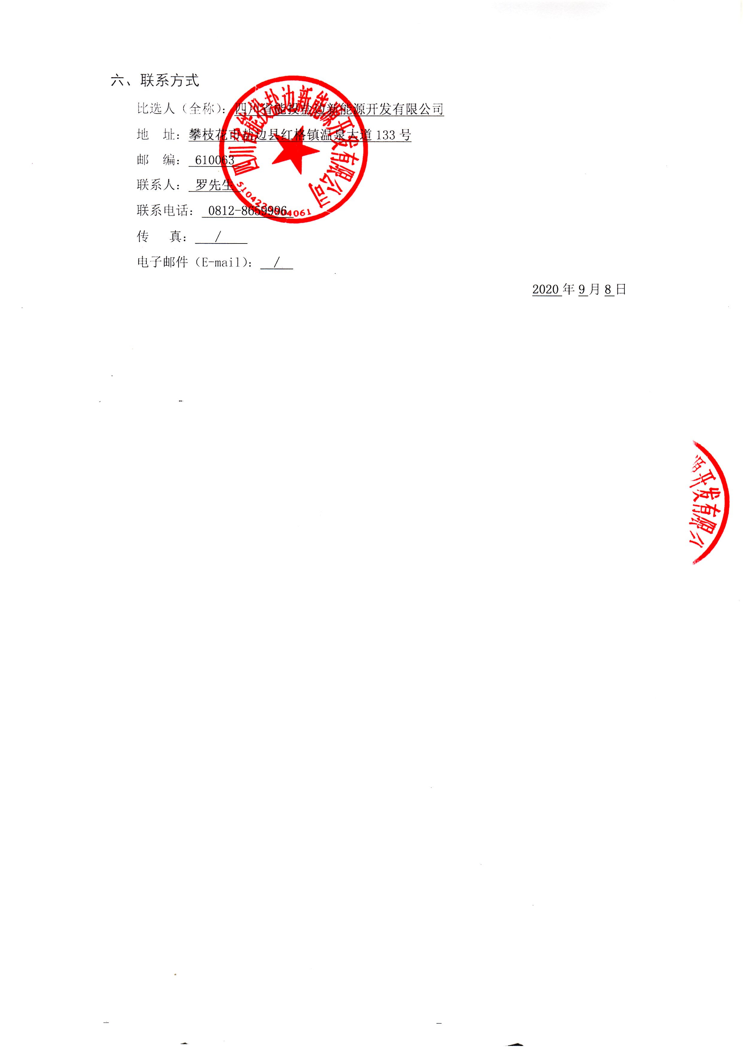 1、比选申请文件递交的截止时间(比选申请截止时间,下同)为2020年9月25日 10 时 00分,地点为: 攀枝花市盐边县红格镇温泉大道133号四川省能投盐边新能源开发有限公司。