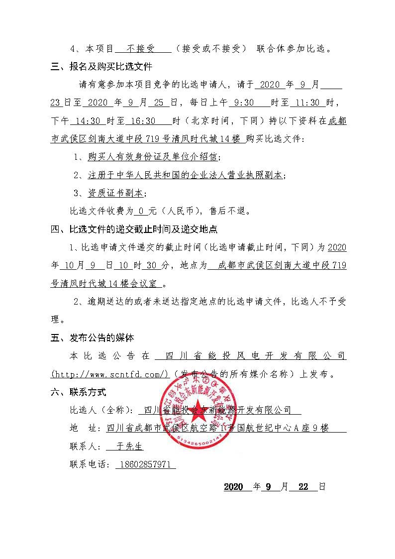 请有意参加本项目竞争的比选申请人,请于 2020 年 9 月 23日至 2020 年 9 月 25 日,每日上午 9:30 时至 11:30 时,下午 14:30 时至 16:30 时(北京时间,下同)持以下资料在成都市武侯区剑南大道中段719号清凤时代城14楼 购买比选文件: