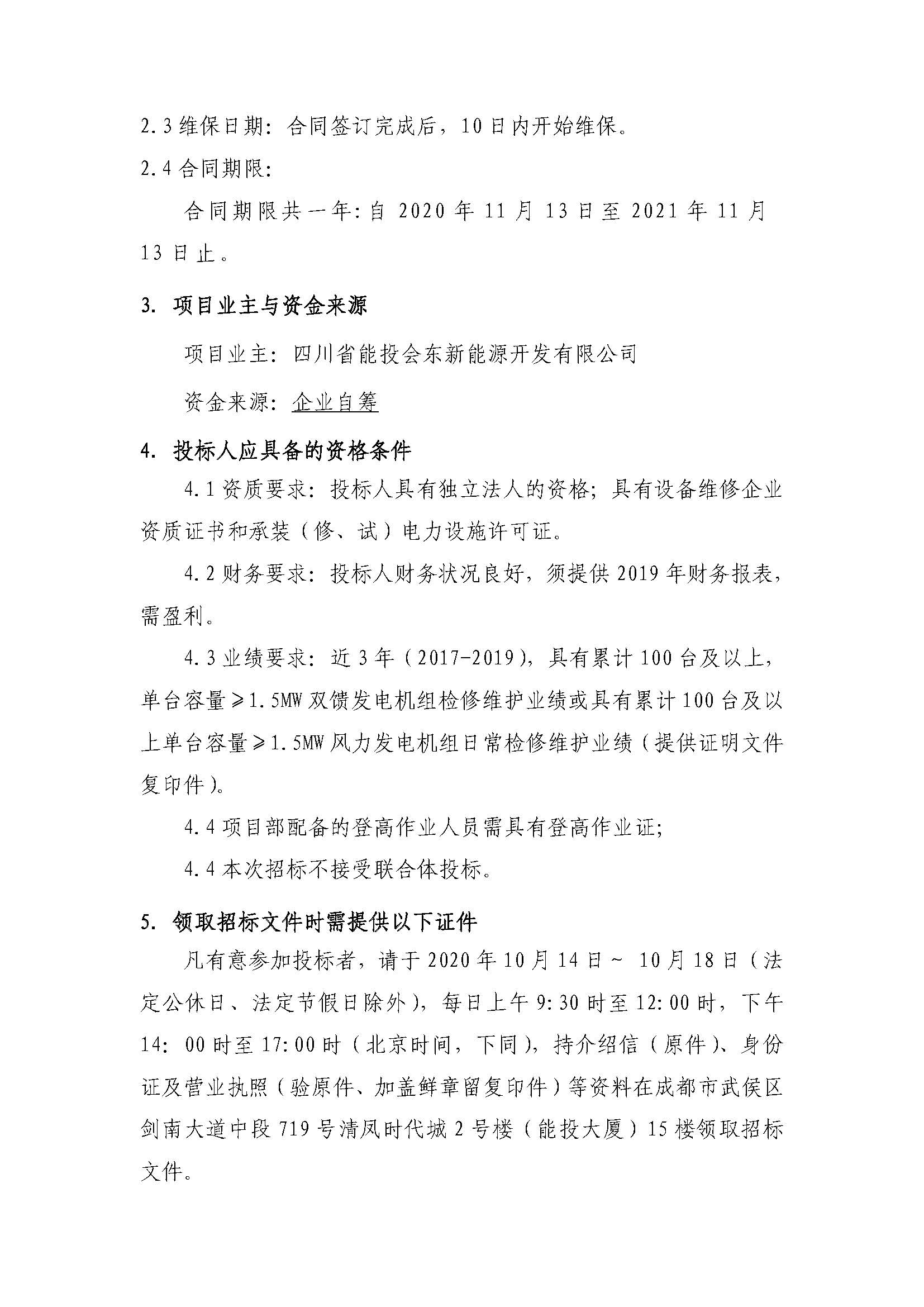 本招标项目为凉山州鲁南风电场33台机组半年/全年期定检维保及专项检测项目,项目业主(招标人)为四川省能投会东新能源开发有限公司,建设资金来自企业自筹。项目出资比例为:100%,项目已具备招标条件,招标人为四川省能投会东新能源开发有限公司。现对该项目进行公开招标。